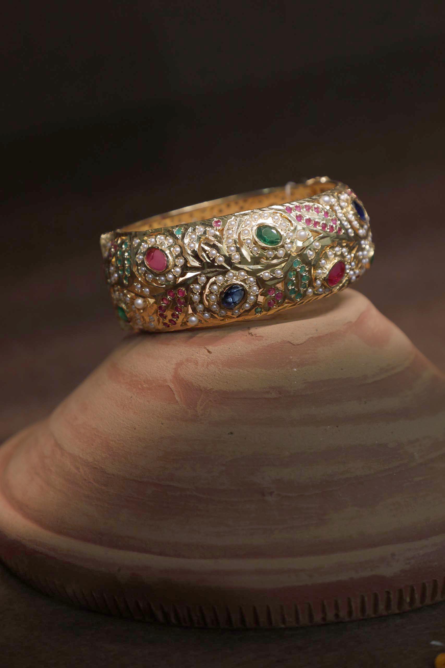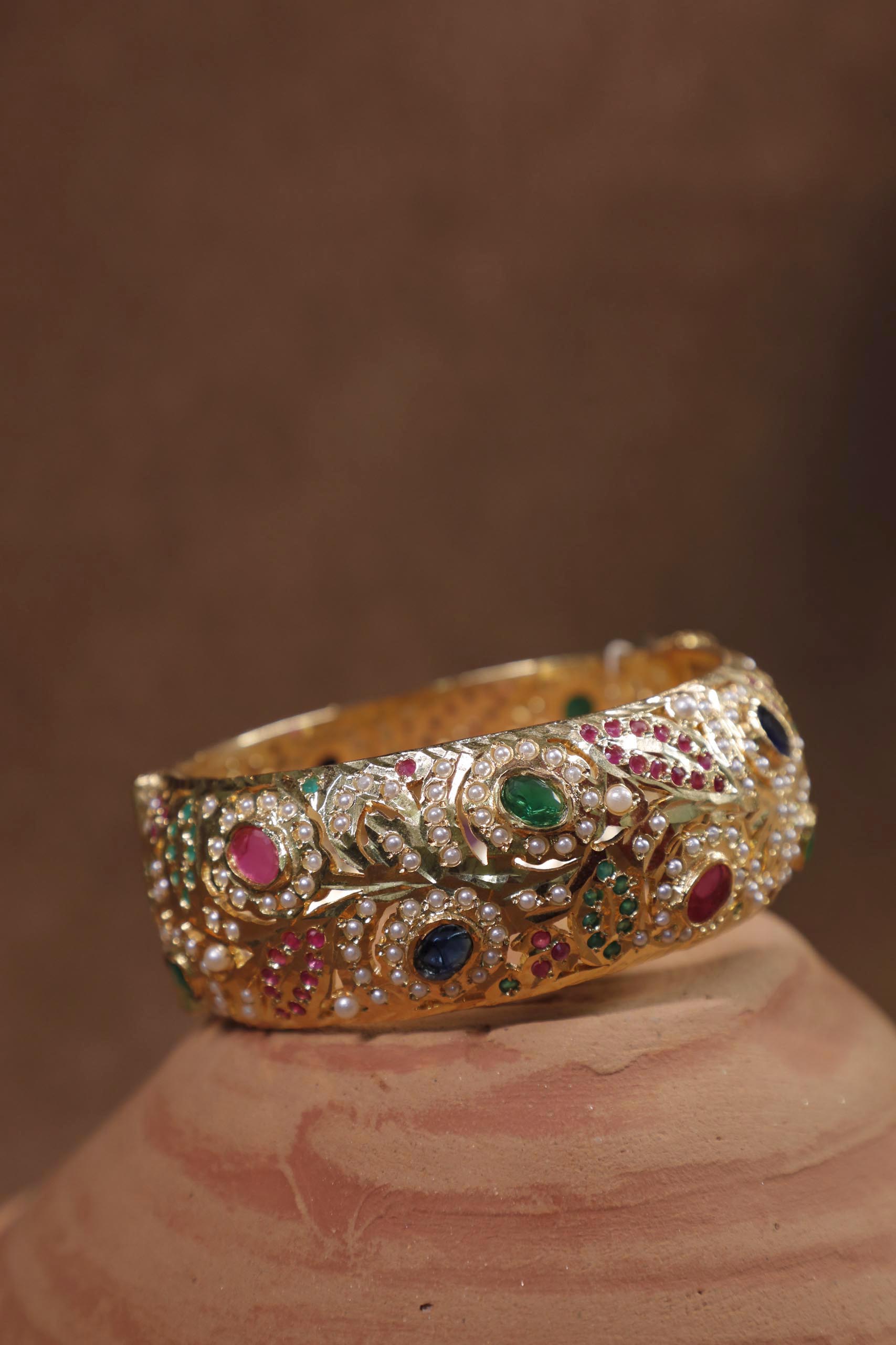 Distinct from Kundan or Polki styles, traditional Jadau jewellery is defined by its exquisite jadai—delicate strings of pearls or beads meticulously hand-woven over a crafted base. This intricate detailing adds depth, richness, and movement to each piece, creating jewellery that feels both regal and timeless. A true celebration of heritage artistry, Jadau work remains a favorite for bridal and ceremonial wear.