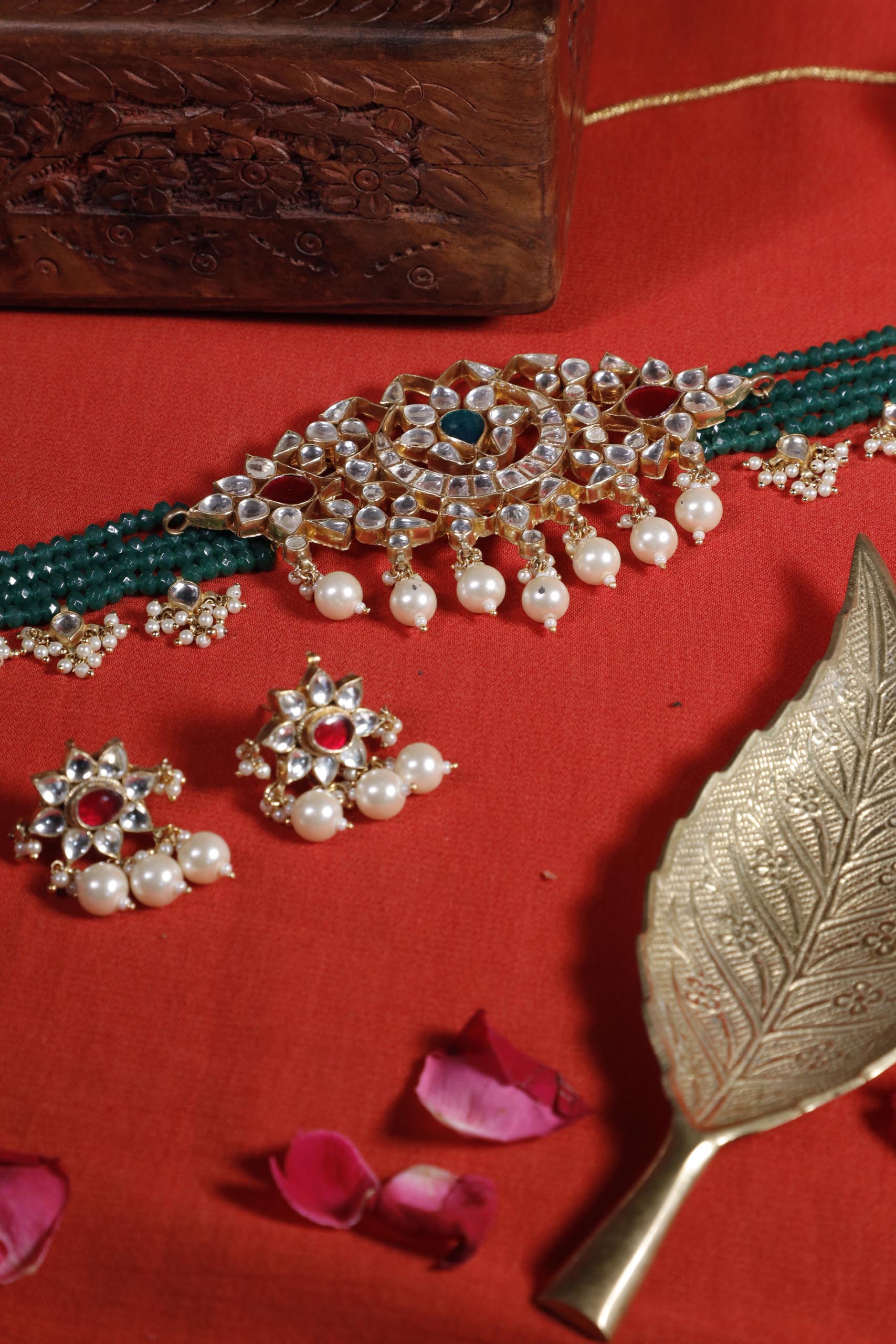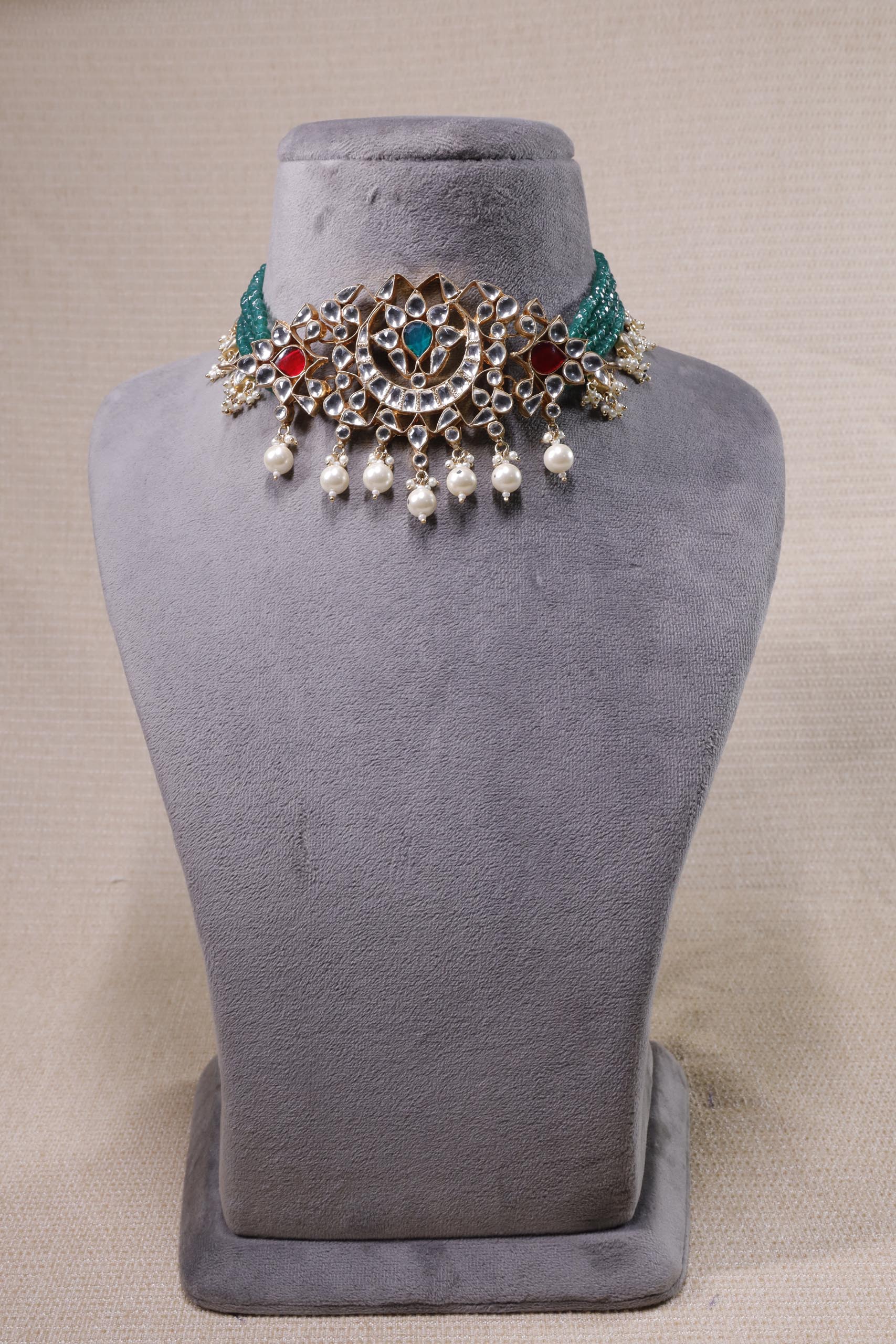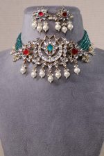 Categories: Kundan Heritage, Necklace Tags: choker set, kundan, NECKLACE, pearls, semi precious stones
