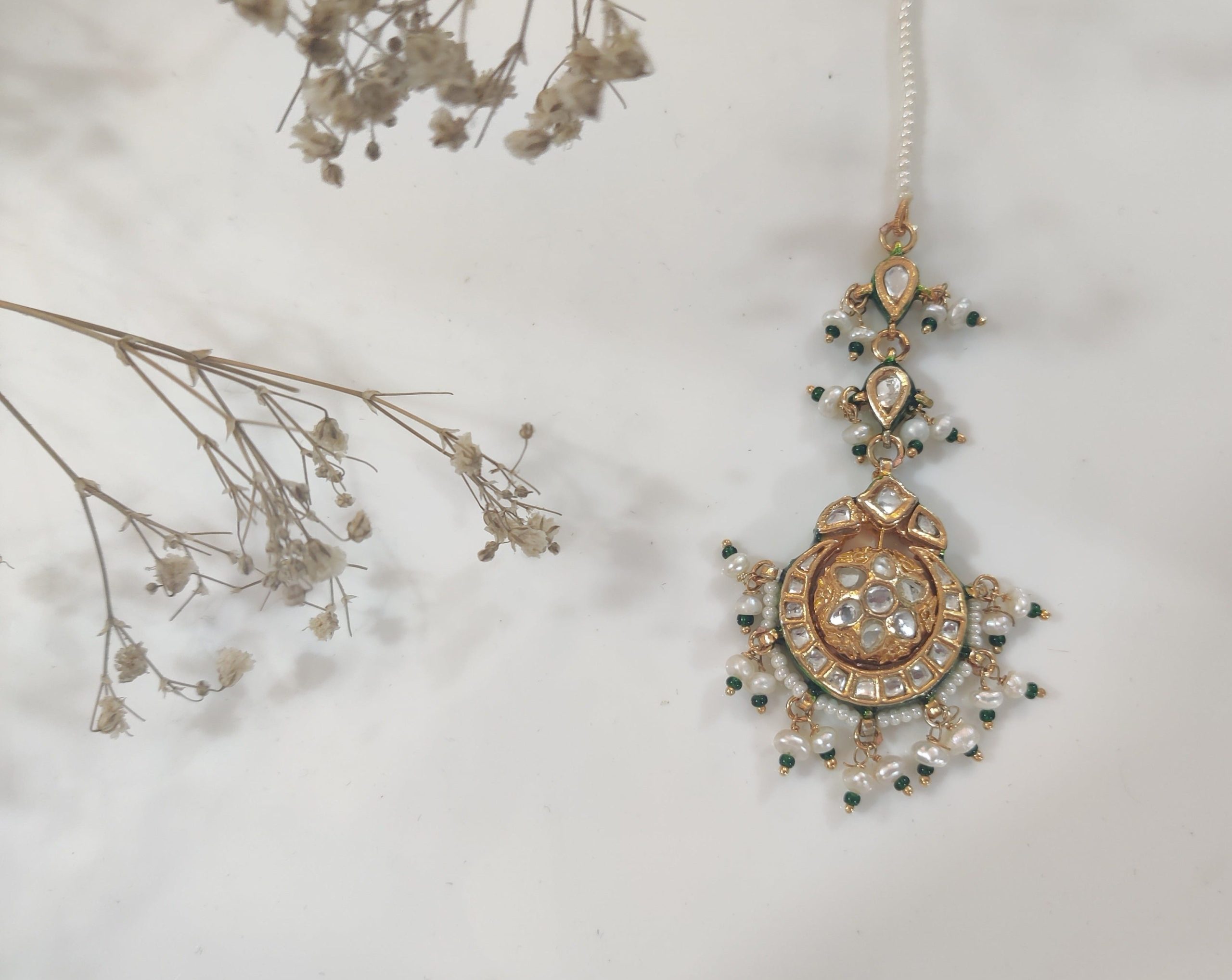 Category: Head Accessories Tags: kundan, maang tikka, mix alloy, pearls