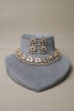 Categories: Kundan Heritage, Necklace Tags: Choker, necklace set, pearls, semi precious stones