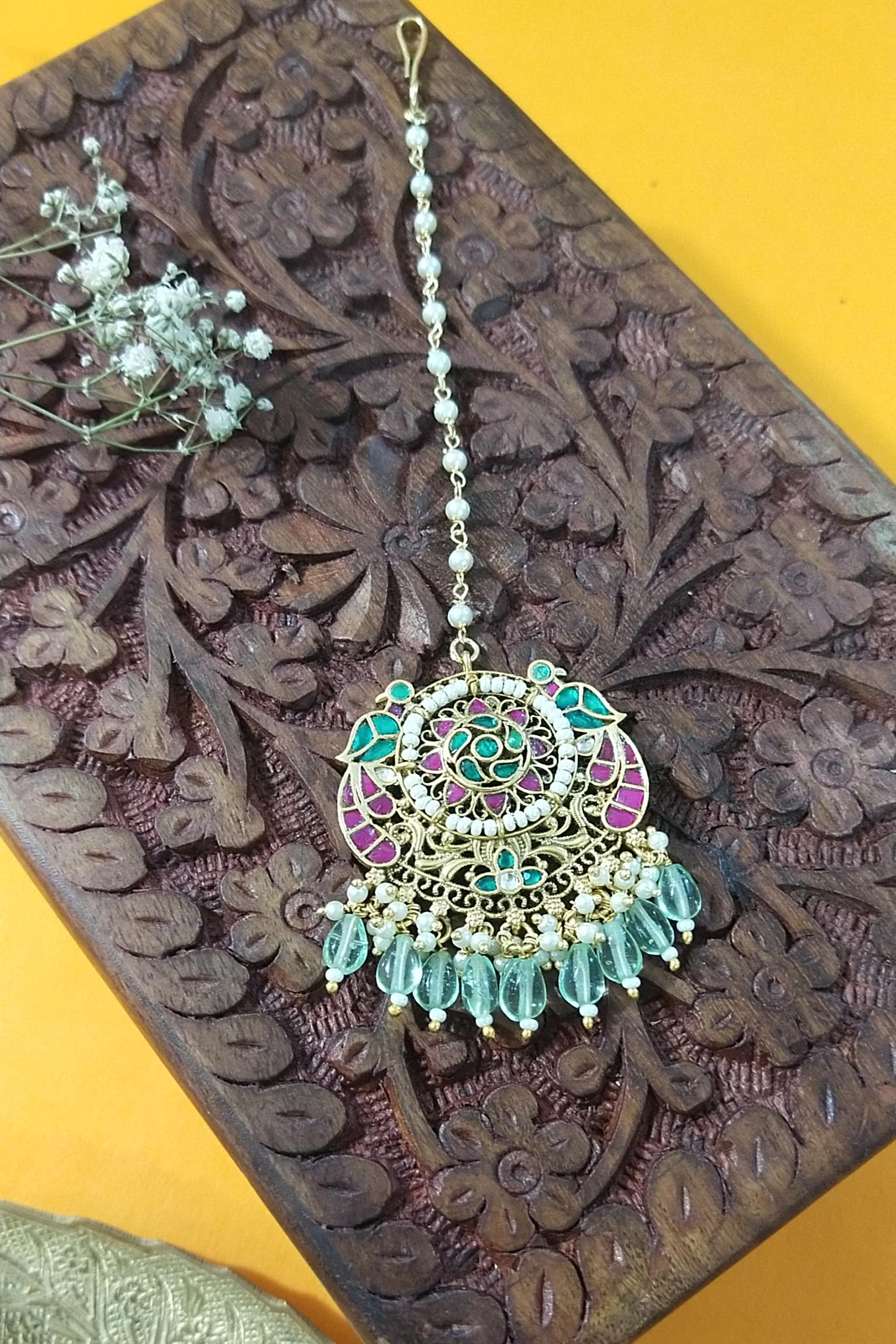 Elevate your festive and bridal look with our exquisite Paachi Kundan tikka, beautifully handcrafted with semi-precious stone settings and finished in luxurious 18K gold plating. Intricate detailing and timeless design make it the perfect accessory for weddings, festivals, and special celebrations. Whether paired with traditional attire or styled with a modern twist, this tikka adds a regal charm and graceful elegance to your ensemble.