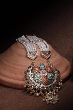 Distinct from Kundan or Polki styles, traditional Jadau jewellery is defined by its exquisite jadaI—delicate strings of pearls or beads meticulously hand-woven over a crafted base. This intricate detailing adds depth, richness, and movement to each piece, creating jewellery that feels both regal and timeless. A true celebration of heritage artistry, Jadau work remains a favorite for bridal and ceremonial wear.