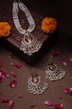 Categories: Necklace, Traditional Jadau Collection Tags: jadau set, necklace set, pearls, semi precious stones